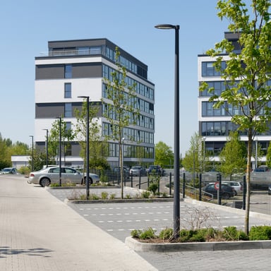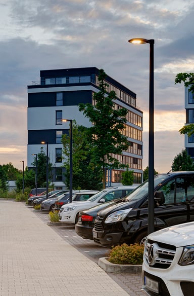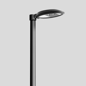 Leuchten mit hoher Schutzart und in Schutzklasse II, mit deren umfassendem Leistungsspektrum sich viele Beleuchtungsaufgaben der Straßen-, Platz- und Stadtbeleuchtung lösen lassen. Die asymmetrisch-bandförmige Lichtstärkeverteilung eignet sich besonders für die Beleuchtung von Straßen nach EN 13201.
