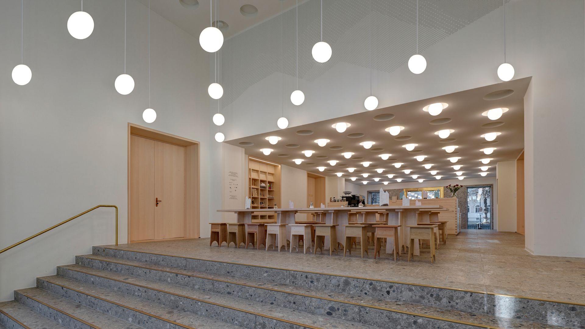 As a nod to the founding era, the museum café still bears the name “Isarlust”. And just like back then, the café serves as a place of rest and social interaction. The lighting concept underscores this idea: BEGA ceiling luminaires are complemented by matching BEGA pendant luminaires to form a harmonious whole. While the softly glowing opal glass ceiling luminaires bathe the room in warm, diffuse light, the spherical pendant luminaires create targeted accents. They hover above the wooden tables for focused yet unobtrusive illumination. They visually structure the room and simultaneously create an inviting atmosphere for relaxed and communicative moments before, during, or after a visit to the museum. In their totality, the various BEGA luminaires at the Alpine Museum create a coherent overall picture with high eye comfort. At the same time, the durable LED luminaires significantly reduce the museum's energy consumption, contributing to one of the most important objectives of the renovation project: responsible resource management.