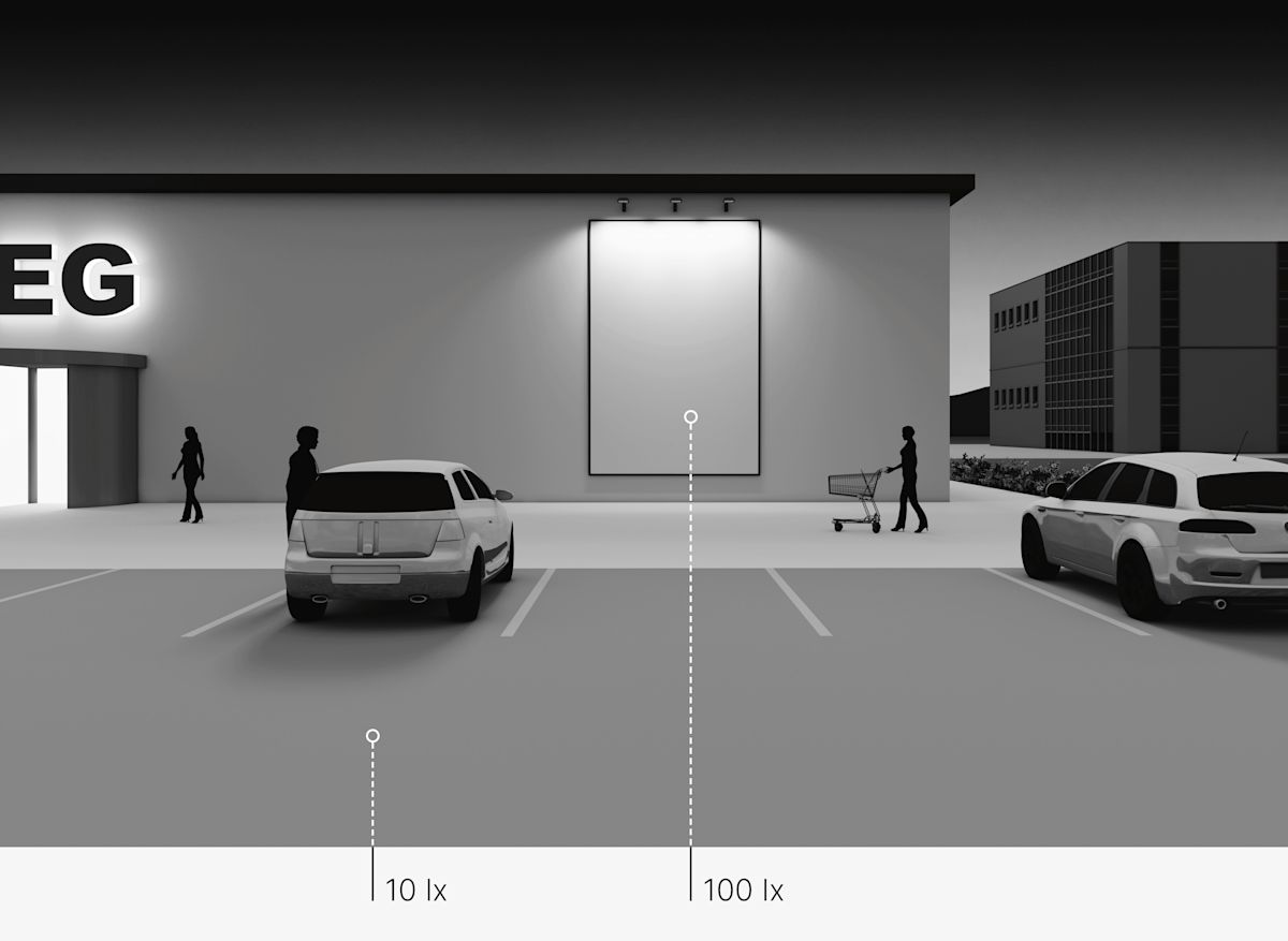 The illumination of advertising spaces repeatedly presents new challenges. A change in motif from a very light to a dark motif, or vice versa, requires an adjustment of the degree of illuminance for the advertising to be effective. In this case, a control unit for the luminaires is strongly recommended in order to provide numerous options for illuminating advertising posters.