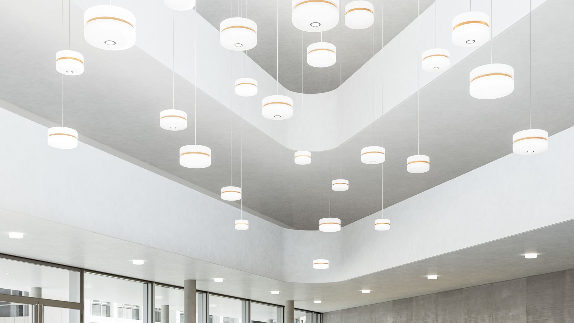 In einer Ausführung ist zudem ein Tiefstrahler integriert, der zusätzlich zum freistrahlenden Licht die Beleuchtungsstärke auf den Flächen unter der Leuchte erhöht. Die Leuchten sind DALI-steuerbar, die Lichtstärke lässt sich auf die jeweiligen Beleuchtungsanforderungen einstellen.