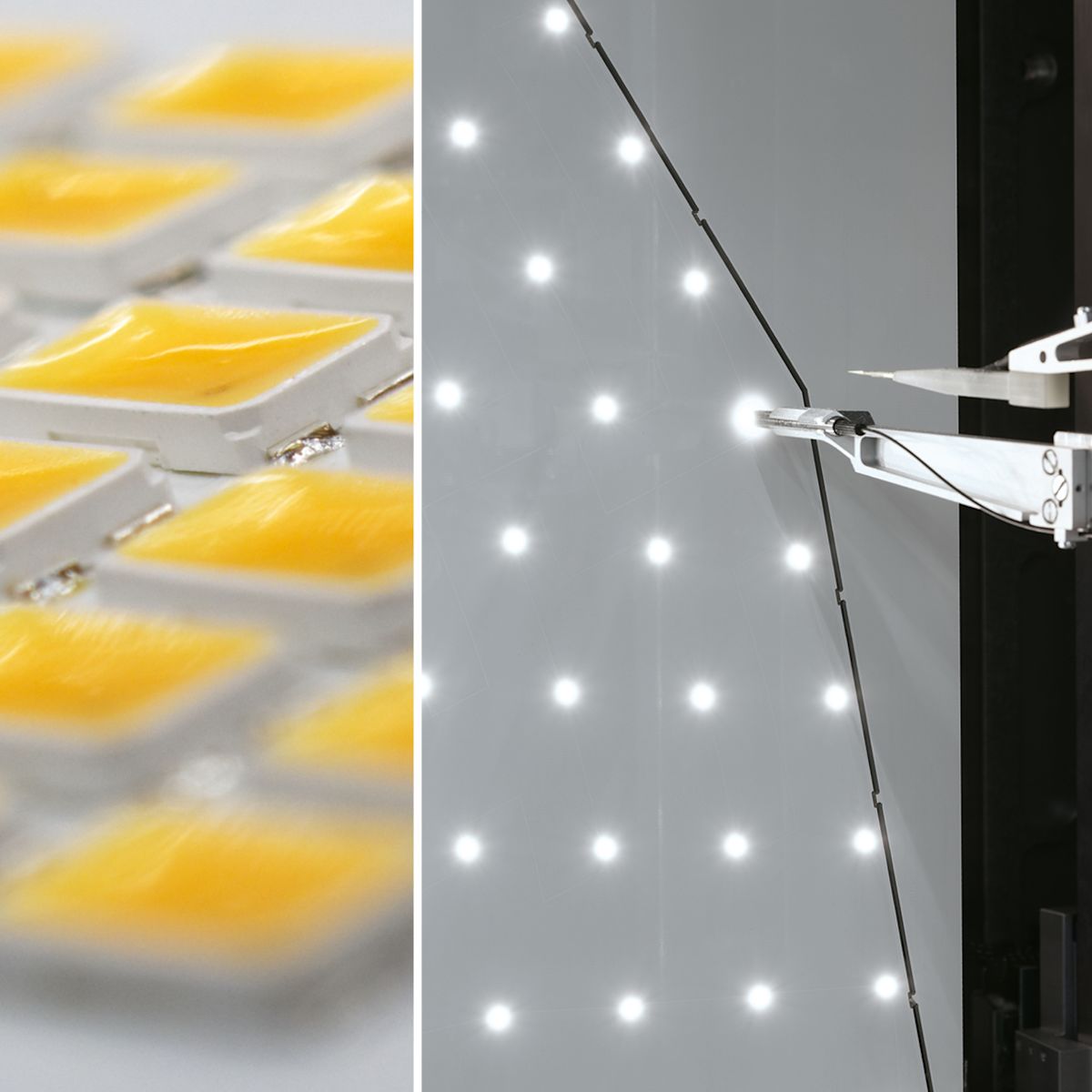 Unsere BEGA Leuchten zeichnen sich durch präzise abgestimmte, selbst entwickelte und hergestellte LED-Module aus. Diese Module werden unter strengen Qualitätskontrollen gefertigt, die weit über marktübliche Standards hinausgehen. Dank jahrzehntelanger Erfahrung kennen wir die hohen Anforderungen an unsere Leuchten und arbeiten kontinuierlich an der Verbesserung unserer Produkte. Bereits früh erkannten wir, dass wir unseren Qualitätsanspruch mit marktüblichen Komponenten nicht erreichen können. Daher produzieren wir unsere LED-Module in eigenen, hochmodernen Fertigungsanlagen. Dies gibt uns die volle Kontrolle über alle verwendeten Materialien und ermöglicht uns, alle wesentlichen Faktoren wie Lichtleistung, Lichtfarbe und Thermomanagement optimal zu bestimmen.