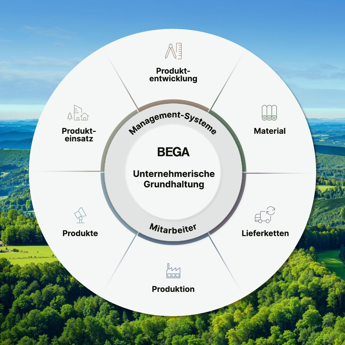 Die Beständigkeit der Produkte steht im Zentrum aller Nachhaltigkeitsbetrachtungen. Daher übertreffen unsere Vorgaben an Lichttechnik, Verarbeitungs- und Gebrauchsqualität auch die Marktstandards. Unsere Produkte sind beständig und zeitlos in allen Facetten, leicht und komfortabel zu installieren. Die durchgehend moderne Gestalt und Form des gesamten Portfolios ist seit jeher der Kern des BEGA Denkens.
