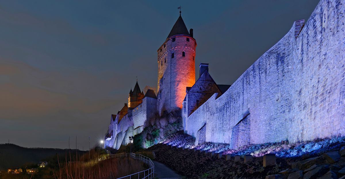 After dark, an atmospheric display of colour unfolds on the north, south and west side of the castle. BEGA luminaires bathe the facades in cool violet and warm red tones, impressively highlighting the characterful structure of the walls. The lighting mood can be flexibly adapted to the changing requirements of different events at any time – both for the regular winter programme, as well as for special, limited-time crowd magnets like the GlanzLicht event from November to early January. The indoor areas of the castle have also been incorporated in the new lighting design: The DJH Youth Hostel, towers, paths and inner courtyards, as well as the entire upper courtyard benefit from the new concept. With the new, individually programmable lighting solution, Altena Castle becomes the changeable backdrop for cultural highlights that make a lasting impact of the townscape and shine their light far beyond the local region.