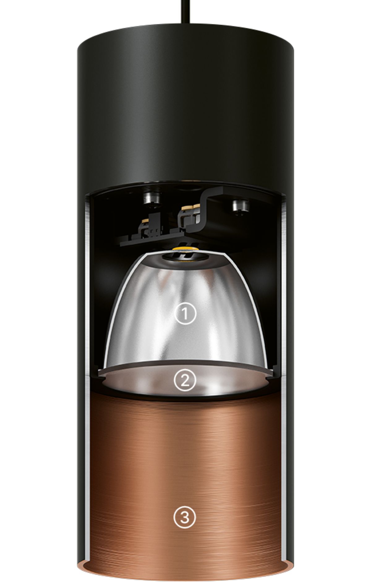 These shielded pendant luminaires create an inviting lighting atmosphere. Their cylindrical shape is a good match for a wide variety of uses in interior design. They are part of the STUDIO LINE luminaire series and feature economical and reliable LED technology as well as a fascinating mix of materials. When illuminated, the metallic interiors provide a beautiful contrast to the exterior finish. Choose the luminaires to match your interior theme – from six colour combinations in various sizes and light outputs.