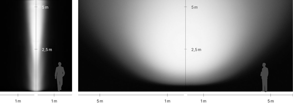 Un control de la luz completo y una perfecta orientación de la luz caracterizan a los sistemas ópticos. Duraderas y prácticamente libres de desgaste, proporcionan una máxima calidad luminotécnica. Las luminarias están disponibles como luminarias de orientación y también como proyectores con distribución de la intensidad lumínica simétrica y distintos semiángulos de irradiación, como bañadores de pared o bien, como proyectores con ángulo de inclinación ajustable. Las siguientes imágenes muestran el rango de las características de la luz.