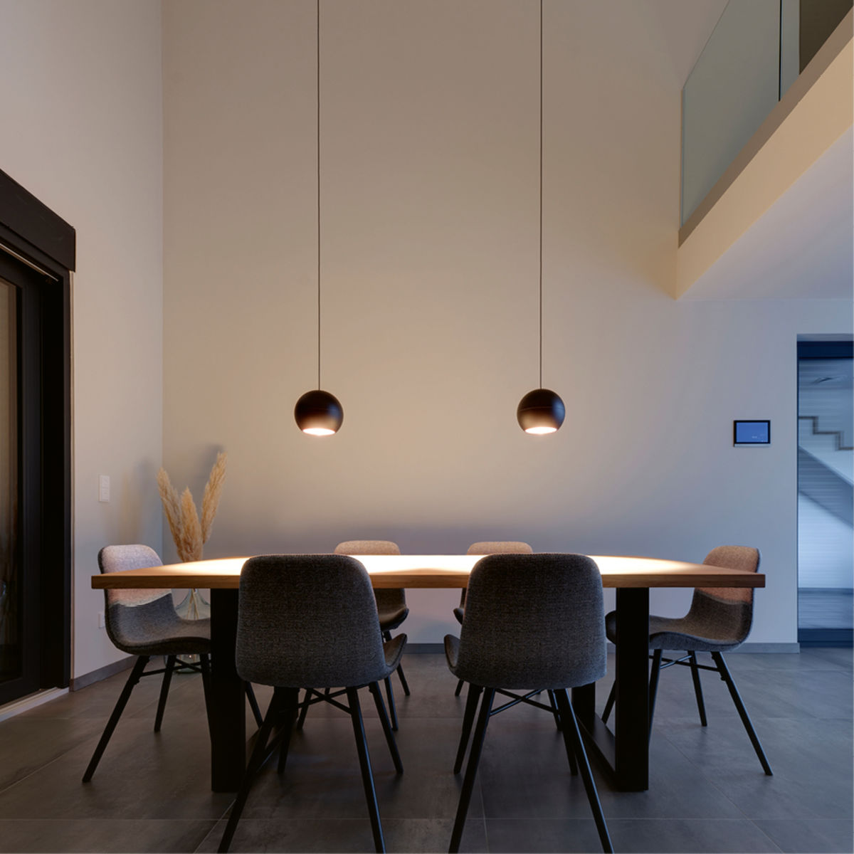 Par bouton-poussoir sur place ou à grande distance par smartphone. Fonctionnalité et sécurité caractérisent la commande de la technique numérique du bâtiment dans et autour des maisons privées. L'éclairage répond aux souhaits indispensables de sécurité, de mise en scène et de confort. L'éclairage dans des zones définies de la maison, autour de la maison et dans le jardin est alors une évidence. Dans les situations d'urgence et d'alarme, par exemple, tous les points lumineux doivent être allumés à pleine puissance.