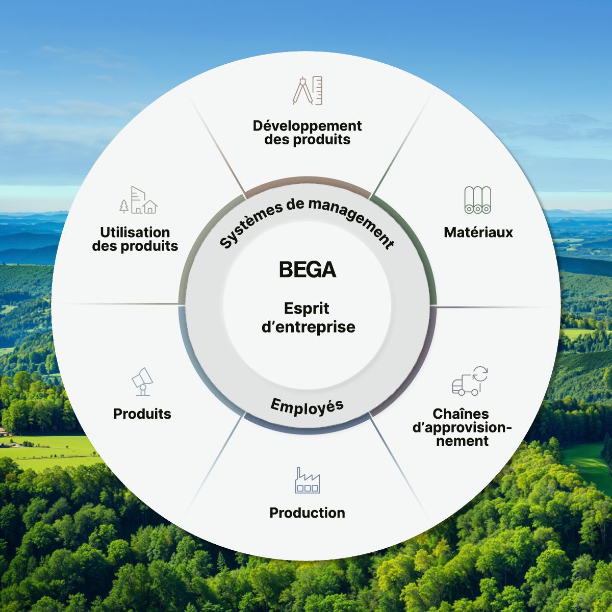 La durabilité des produits est au cœur de toutes les considérations de durabilité. C'est pourquoi nos exigences en matière de technique d'éclairage, de qualité de fabrication et d'utilisation dépassent les normes du marché. Nos produits sont durables et intemporels dans toutes leurs facettes, faciles et confortables à installer. La forme moderne de l'ensemble de la gamme a toujours été au cœur de la pensée de BEGA.