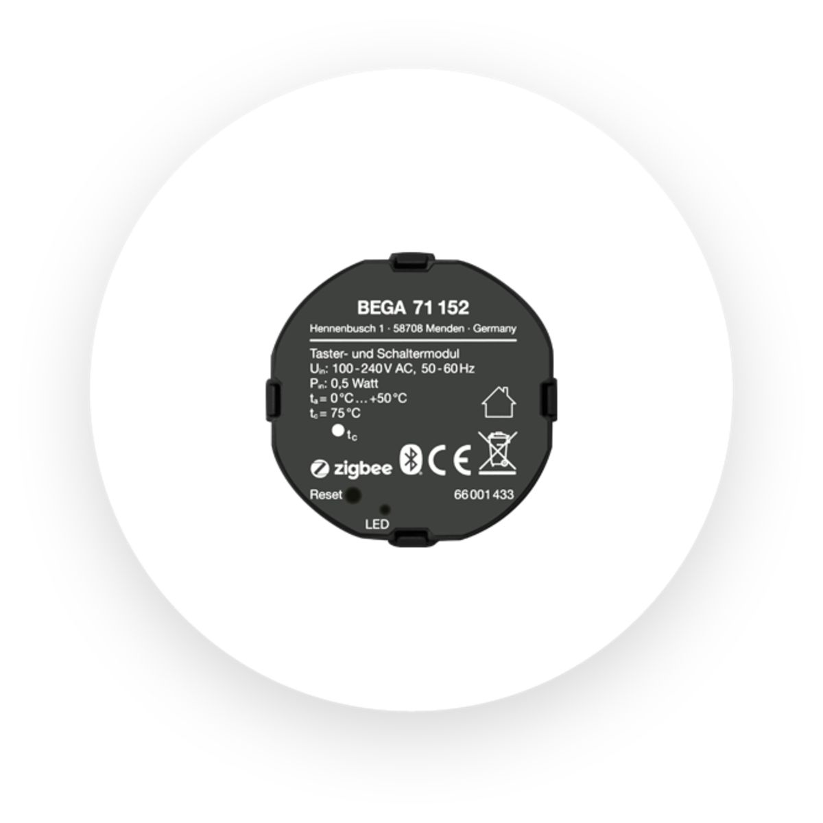 De drukknop- en schakelaarmodule voor BEGA Smart maakt de integratie van conventionele schakelaars en drukknoppen draadloos mogelijk in BEGA Smart en wibutler