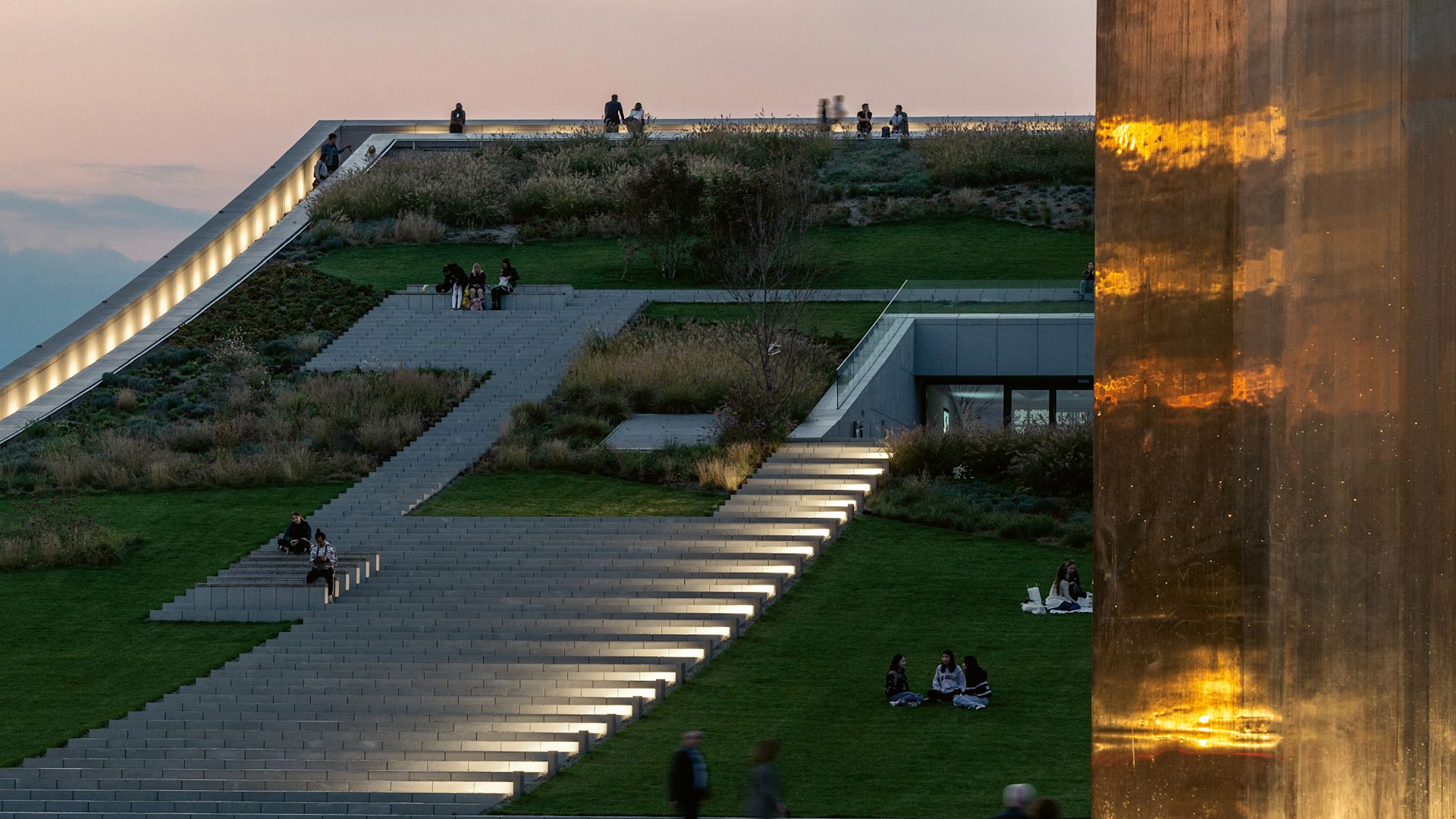 Several footpaths, illuminated by BEGA pole-top luminaires guide visitors to the museum with its imposing roof structure, which is grassed and planted over an area of more than 7300 square metres, and is accessible via a number of staircases. A wide central staircase, which doubles as rest area, leads upward. BEGA bollards with glare-free light distribution create an inviting and safe environment. Narrow staircases along the building’s wings lead to the highest point of the roof garden. Their asymmetrical light distribution highlights edges and contours, spatial depth perception is improved, and every step feels safe. Once at the top, breathtaking views of the city and surrounding landscapes await the visitors.